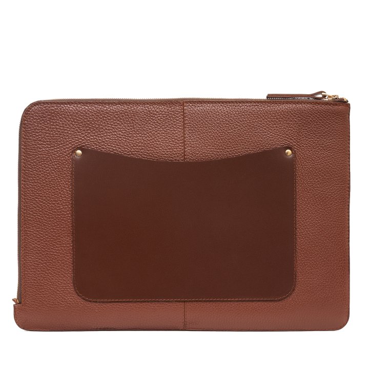 Шкіряний чохол універсального розміру для ноутбуків з діагоналлю від 13 до 17 дюймів. Виготовлений з натуральної шкіри з м’яким підкладом, який додатково захищає пристрій від подряпин.